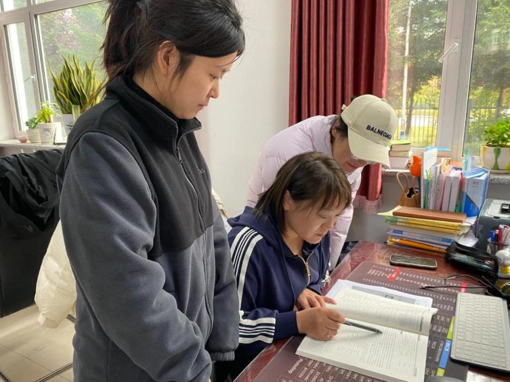 支教学校指导老师对王宏展进行教研指导汲取经验