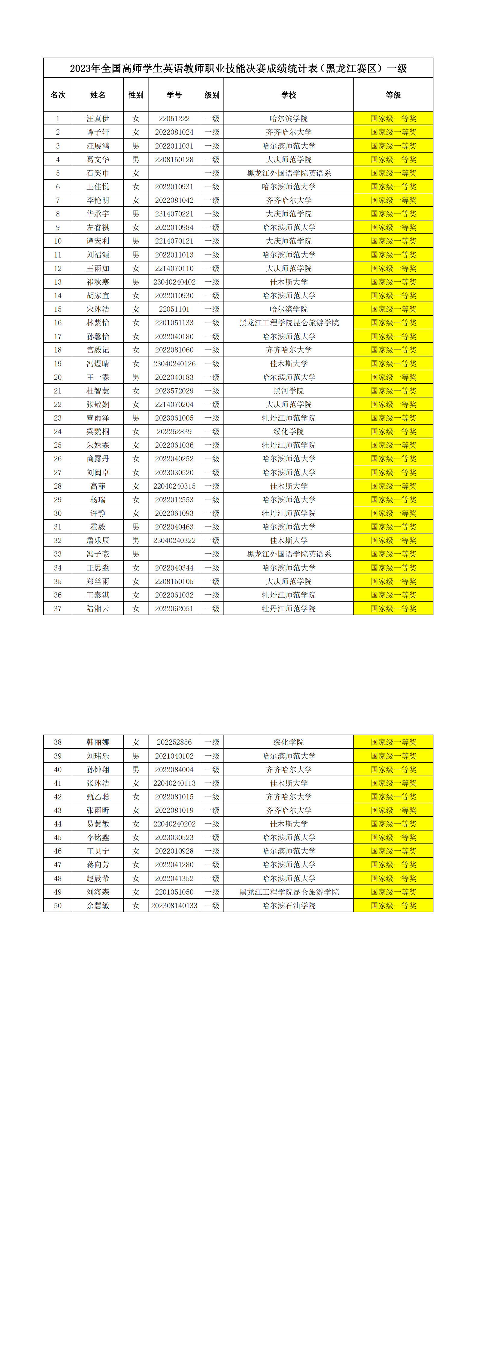 获奖名单