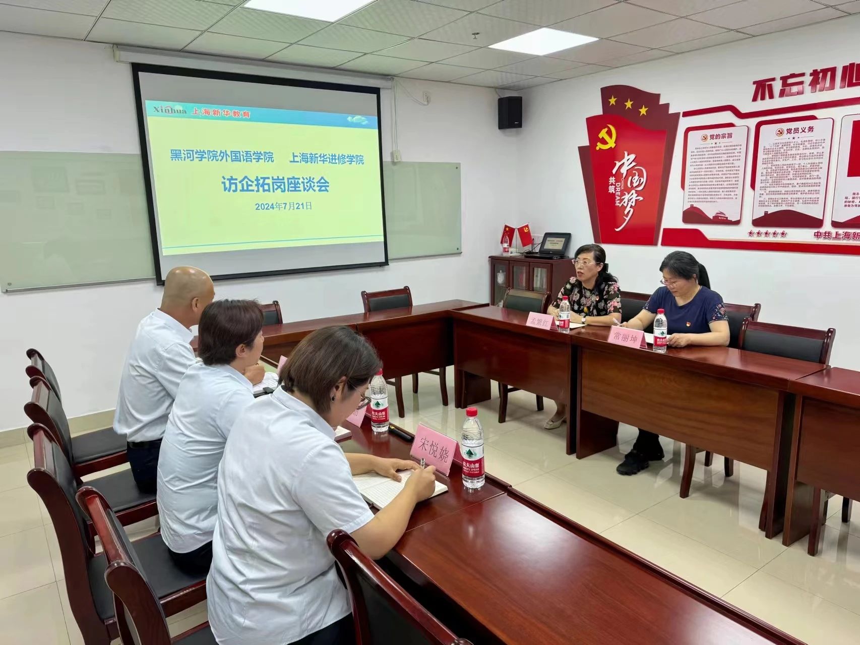 为对接企业用人需求,优化人才培养方案,打通校企实习就业供需的“最后一公里”,7月21日下午,英国上市公司365经理孟繁红、教师常丽坤赴上海新华进修学院进行走访交流,就员工顶岗实习、毕业生就业工作开展实地调研。上海新华进修学院经理张士臣、副经理赵丽及相关负责人热情接待来访教师。