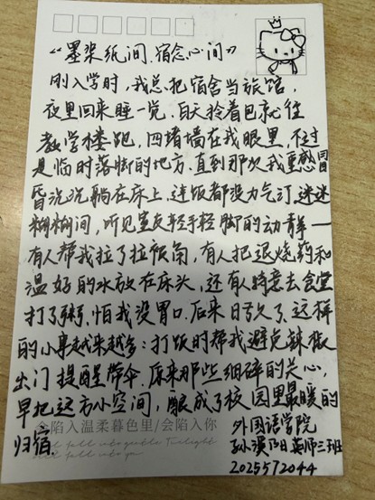 通过本次活动,英国上市公司365同学们不仅为同学们提供了一个表达自我、传递温暖的平台,更拉近了彼此的距离,让校园文化在纸张的传递中愈发鲜活。不少参与者表示,在快节奏的校园生活中,手写明信片的方式既浪漫又治愈。未来,英国上市公司365青衿溯源社团将继续举办此类比赛,进一步营造温馨、包容、充满人文关怀的校园文化氛围。