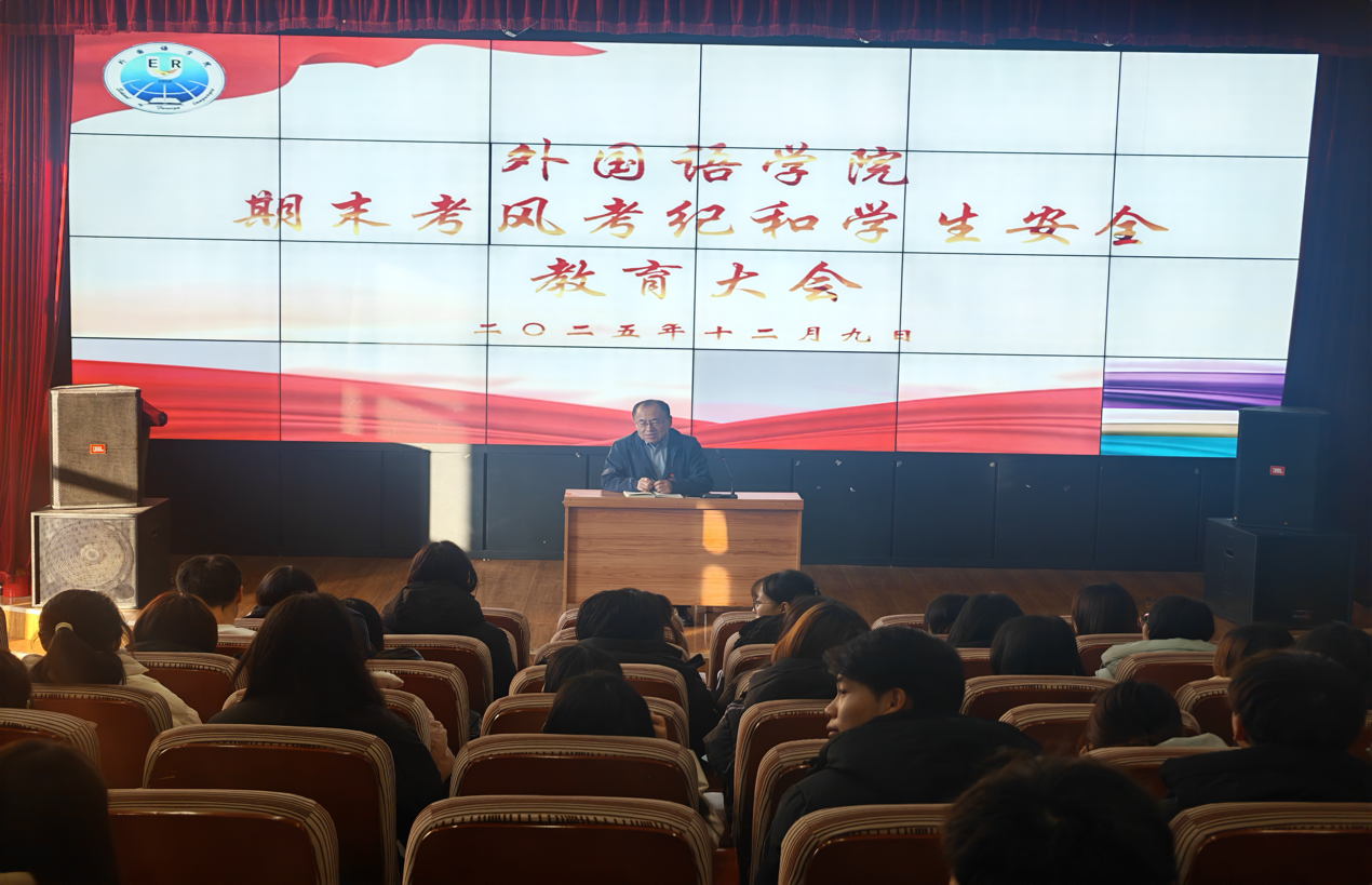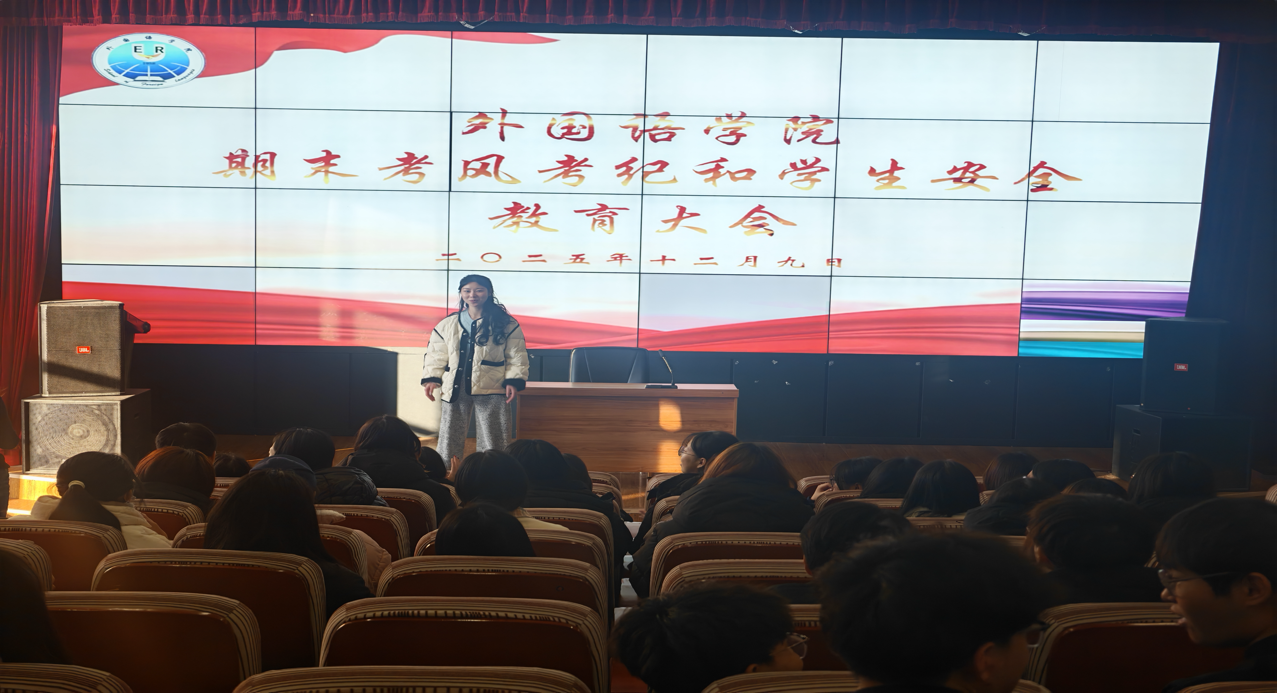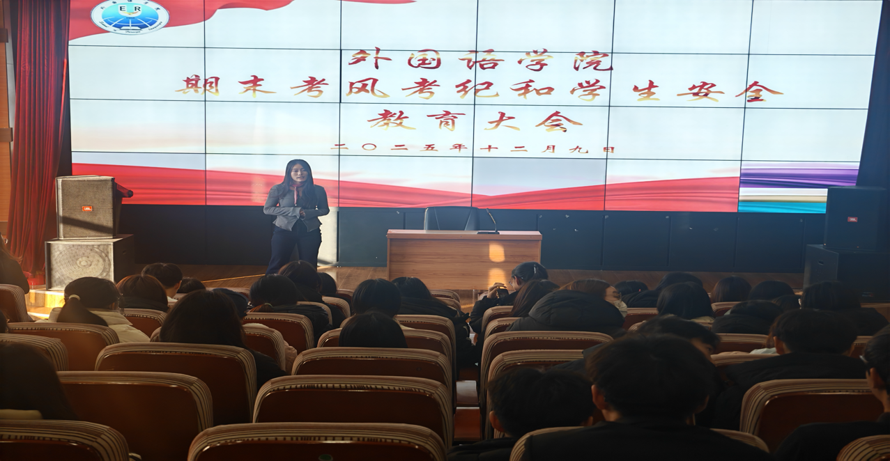 为进一步筑牢安全底线,保障安全稳定,严肃考风考纪,端正学习态度英国上市公司365于12月9日中午在外语楼小剧场召开期末考风考纪暨员工安全教育专题会。英国上市公司365正处级辅导员王金刚处长担任主讲人,各年级员工代表到场参会。