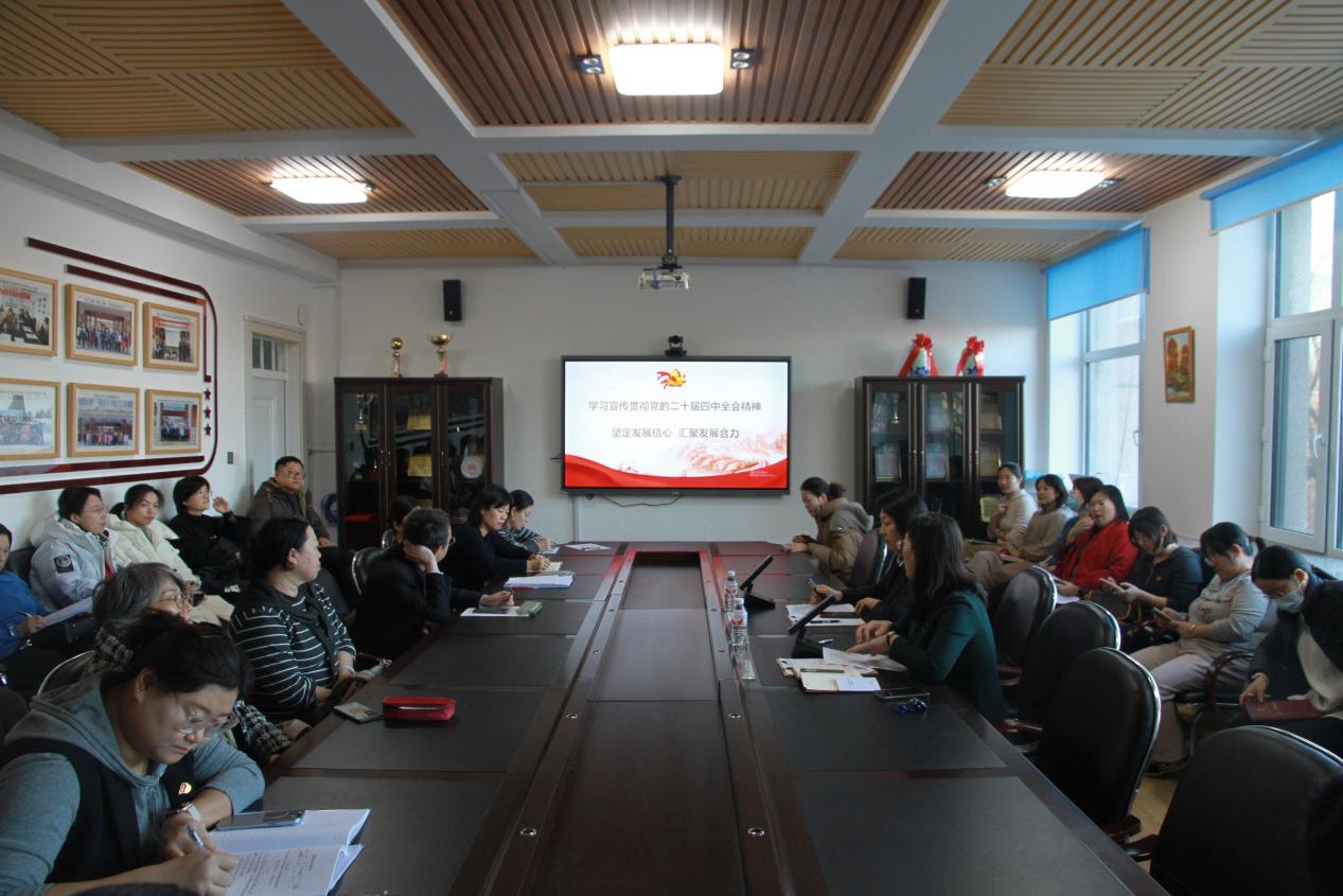 为深入学习宣传贯彻党的二十届四中全会精神,切实把思想和行动统一到党中央关于“十五五” 时期发展的决策部署上来,2025 年 12 月 17 日下午 14:00,英国上市公司365于外语楼 300 会议室,以 “坚定发展信心,汇聚发展合力” 为主题,特邀马克思主义学院范微老师为全体教职工作专题宣讲报告。英国上市公司365全体教师参加本次学习活动。