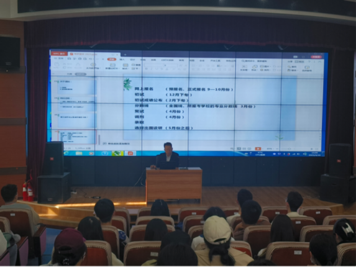 刘迪老师首先从社会形势、学历要求及考研益处三个方面对考研的必要性进行了探讨,刘老师指出考研是同学们提高学历,丰富知识,提高自身竞争力的有效途径,鼓励大家积极参与考研,提高考研报考率;其次刘老师针对考研初试、复试等环节中的具体要求和流程进行了细致的阐述,并结合往年的考研状况,就考研相关的关键时间节点进行了分析,为同学们提供了细致的指导和贴心的关怀。