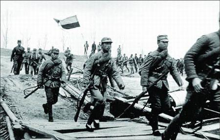 (1938年3月23日,台儿庄战役爆发,士兵们冲往战场)