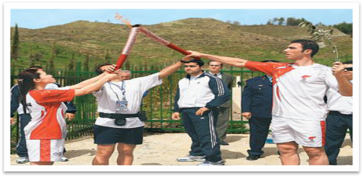 2008年3月24日中午,北京2008年奥运会圣火取火仪式在奥林匹克运动的故乡——希腊古奥林匹亚遗址隆重举行。北京2008年奥运会圣火在奥林匹亚点燃,这标志着北京奥运会奏响了恢弘壮丽的序曲。中共中央政治局委员、北京市委书记、北京奥组委主席刘淇从希腊奥委会主席米诺斯·基里亚库手中接过具有纪念意义的奥运圣火火种罐。