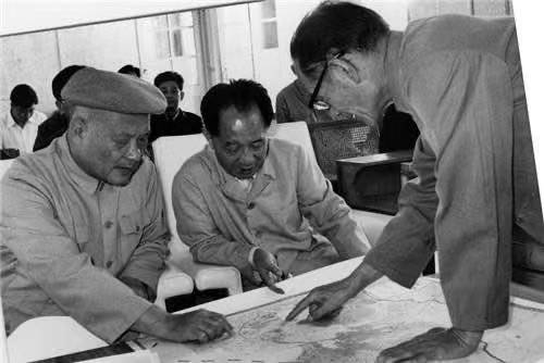 (此图为周总理等人与国民党进行和谈会议场景。)