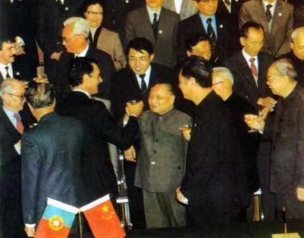 (1987年3月26日 中葡草签《关于澳门问题的联合声明》。)