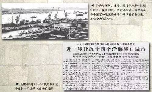 1984年3月26日至4月6日 中共中央书记处和国务院在北京召开沿海部分城市座谈会。根据邓小平2月24日关于对外开放和特区工作的重要谈话,会议建议进一步开放由北至南14个沿海港口城市:大连、秦皇岛、天津、烟台、青岛、连云港、南通、上海、宁波、温州、福州、广州、湛江、北海,作为我国实行对外开放的一个新的重要步骤。5月4日,中共中央、国务院转发《沿海部分城市座谈会纪要》,并发出通知指出:沿海开放城市的建设,主要靠政策,一是给前来投资和提供先进技术的外商以优惠待遇;二是扩大这些城市的自主权,让他们有充分的活力去开展对外经济活动。