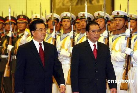 (2003年4月7日,胡锦涛与越共总书记农德孟在北京举行会谈。)