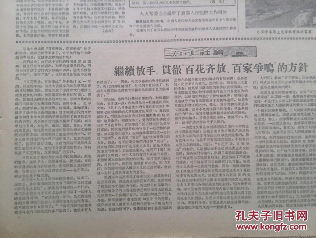 (此图为《继续放手,贯彻“百花齐放,百家争鸣”的方针》的文章。)