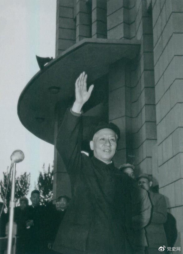 (1960生4月18日,刘少奇在郑州接见参加河南省六级干部会议的代表,向代表们挥手致意。)