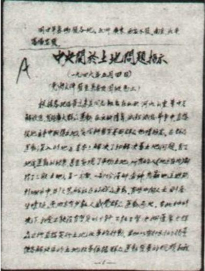 1946年5月4日,中共中央发出《关于土地问题的指示》(即《五四指示》)。