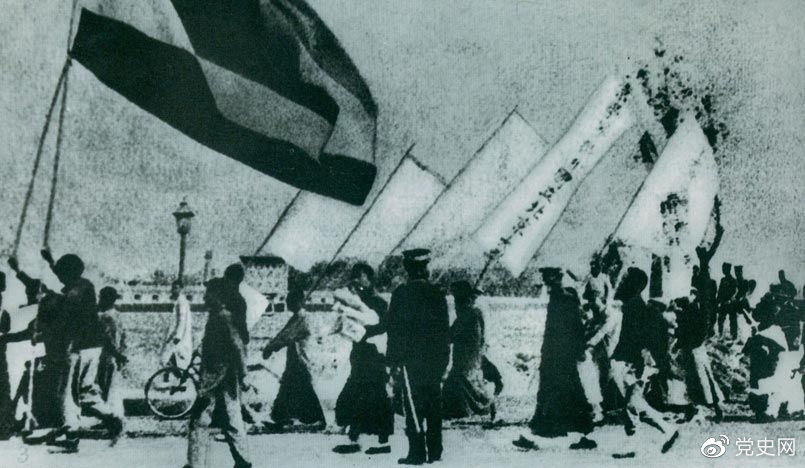 (1919年五四运动中,北京游行示威员工遭到镇压逮捕,在全国各界抗议下,获得释放返校。)