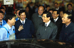 (胡锦涛在吉林考察强调全面振兴东北地区老工业基地)(图片来源:新华网)