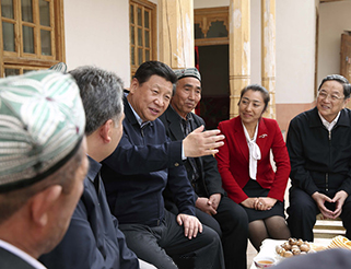 2014年5月28日,习近平在第二次中央新疆工作座谈会上指出,要围绕社会稳定和长治久安这个总目标,坚持依法治疆、团结稳疆、长期建疆,努力建设团结和谐、繁荣富裕、文明进步、安居乐业的社会主义新疆。