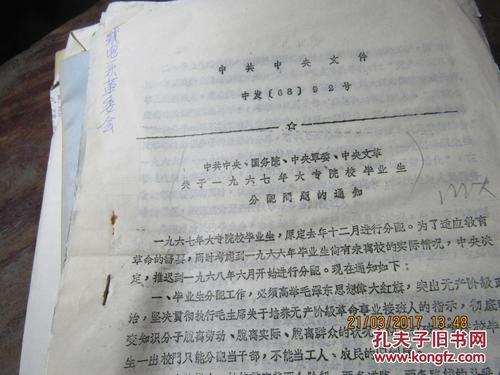 1968年6月2日,中共中央发出《关于1967年大专院校毕业生分配问题的通知》,决定1967年大专院校毕业生推迟到1968年6月开始进行分配。