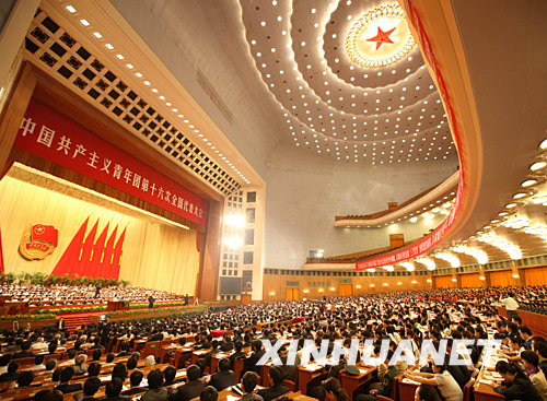 (2008年6月10日,中国共产主义青年团第十六次全国代表大会在北京人民大会堂开幕) (图片来源:新华社)