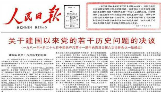 (此图为人民日报刊登在十一届六中全会上通过的决议的内容)